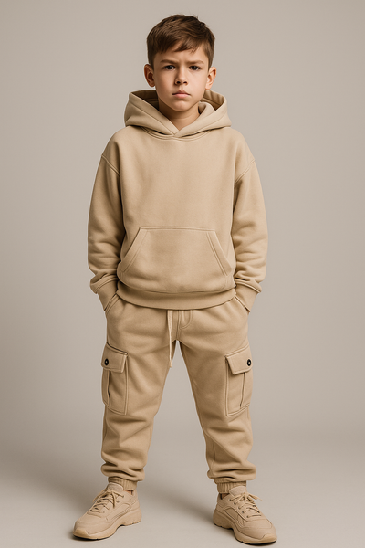 Completo cargo felpa drip basic bambino beige